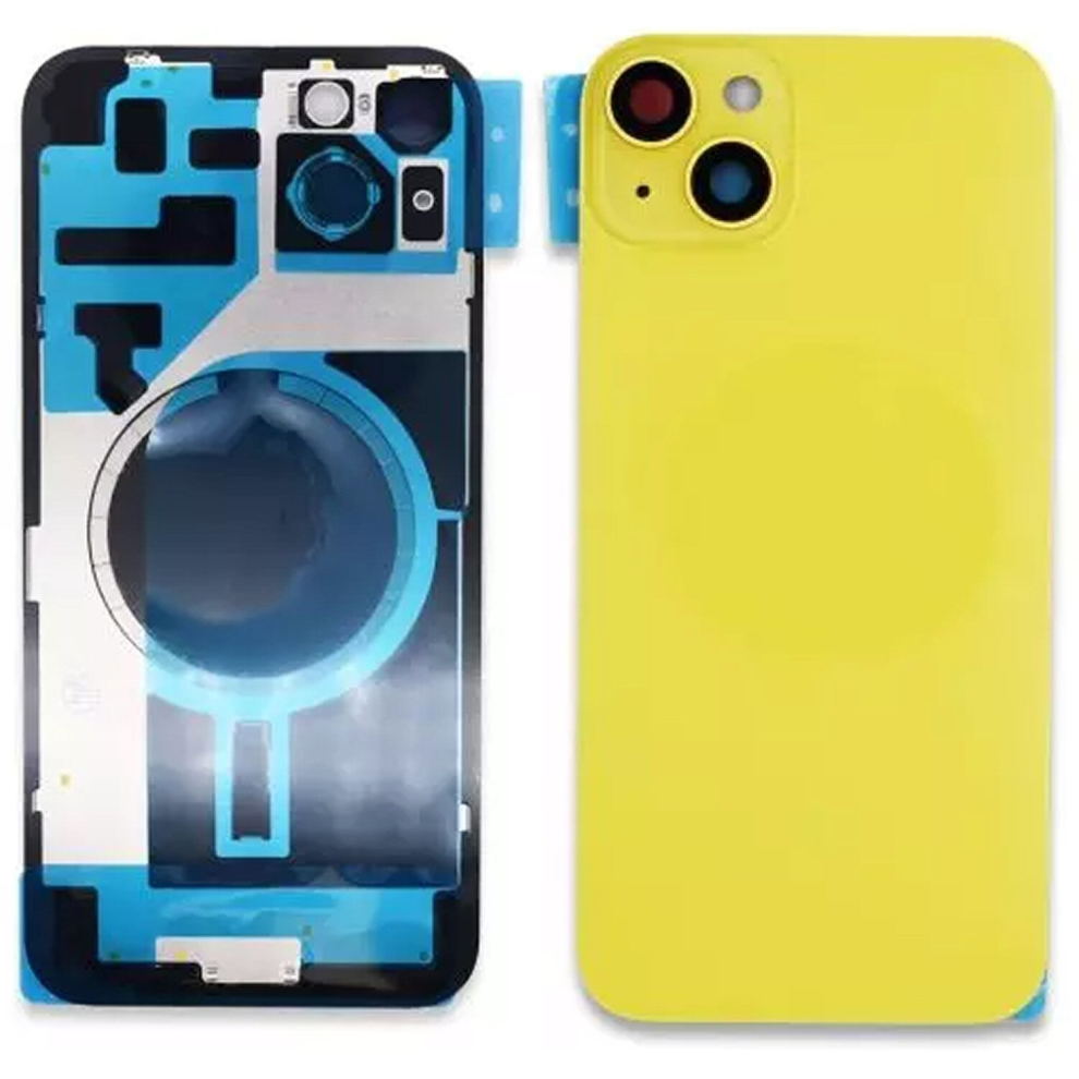 Glass Back Compatible With iPhone 14 Plus Yellow Battery Door Camera Lens Bezel Magnetism Ring + Metal Plate Plain Without Logo