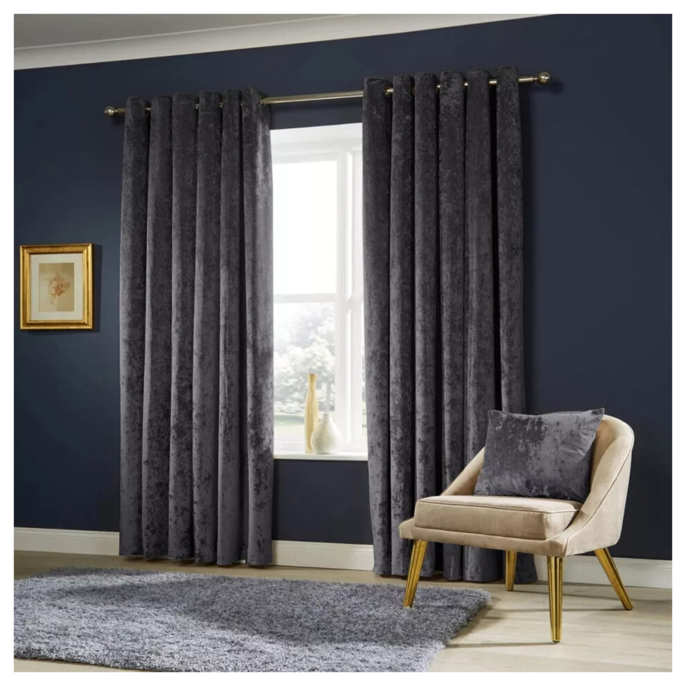 (DARK GREY, 66 x 84 DOOR CURTAIN) Soft Velvet Curtains Eyelet Ring Top Ready Made UK