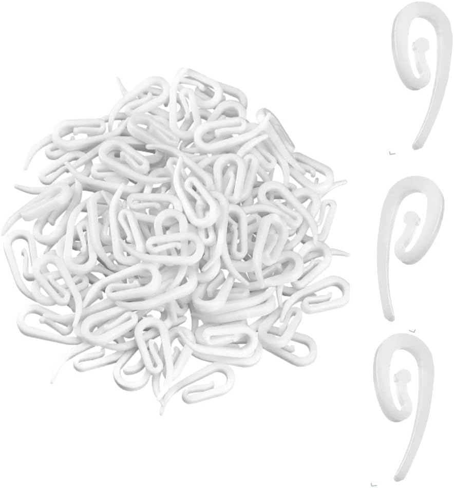 White Plastic Curtain Hooks – Drapery Hooks for Door or Window Curtains (Pack