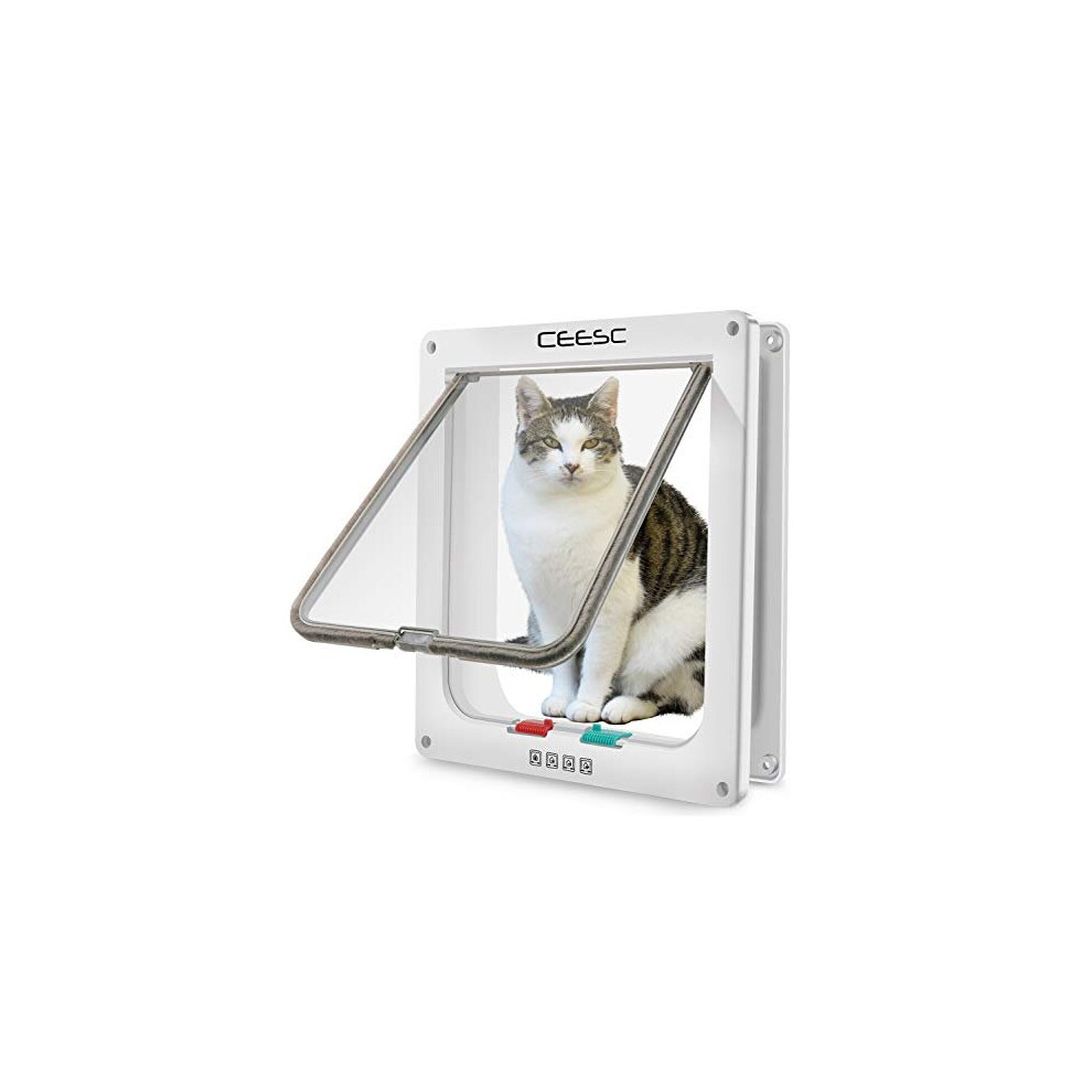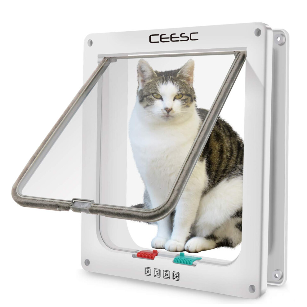 CEESC Large Cat Flap (Outer Size 11" x 9.8"), 4 Way Locking Large Cat Flap Door for Interior Exterior Doors, Weatherproof Pet Door for Cats & Doggie