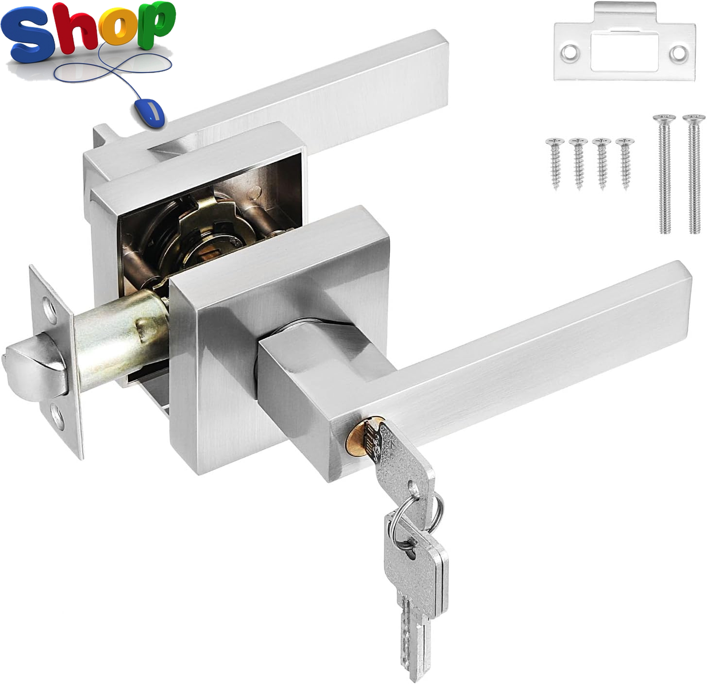HSEAMALL Door Lever Handle Lock,Interior Door Handle with Lock and Key Square E