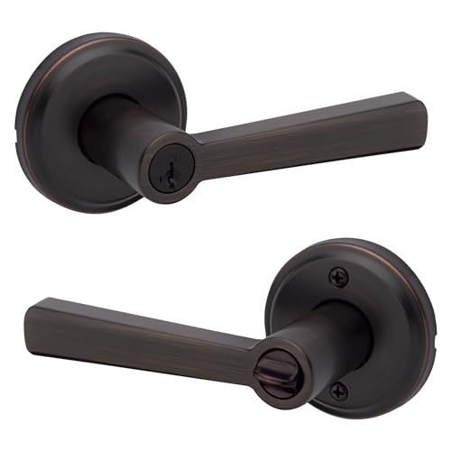 Kwikset Trafford Entry Door Handle with Lock and Key, Secure Keyed Reversible Lever Exterior, for Front Entrance and Bedrooms, Venetian Bronze, Pick Resistant Smartkey Rekey Security and Microban