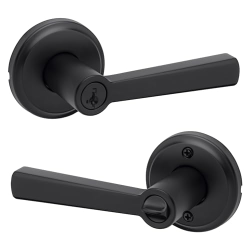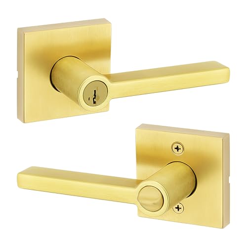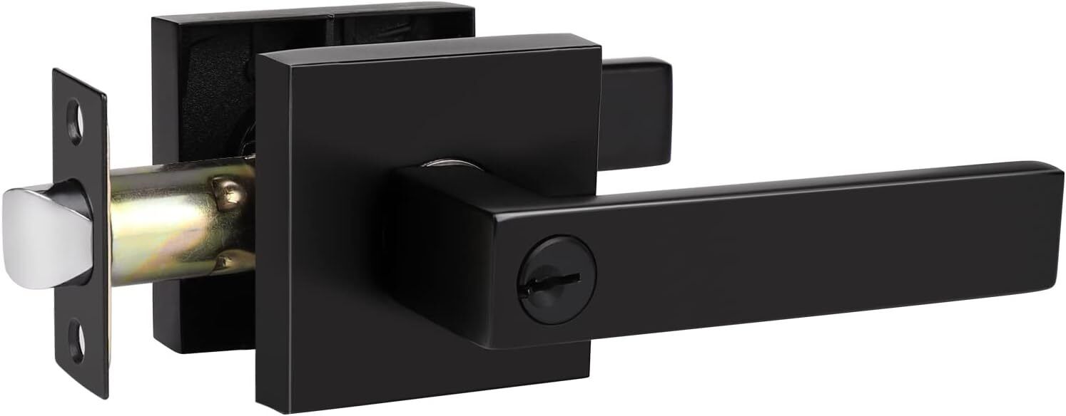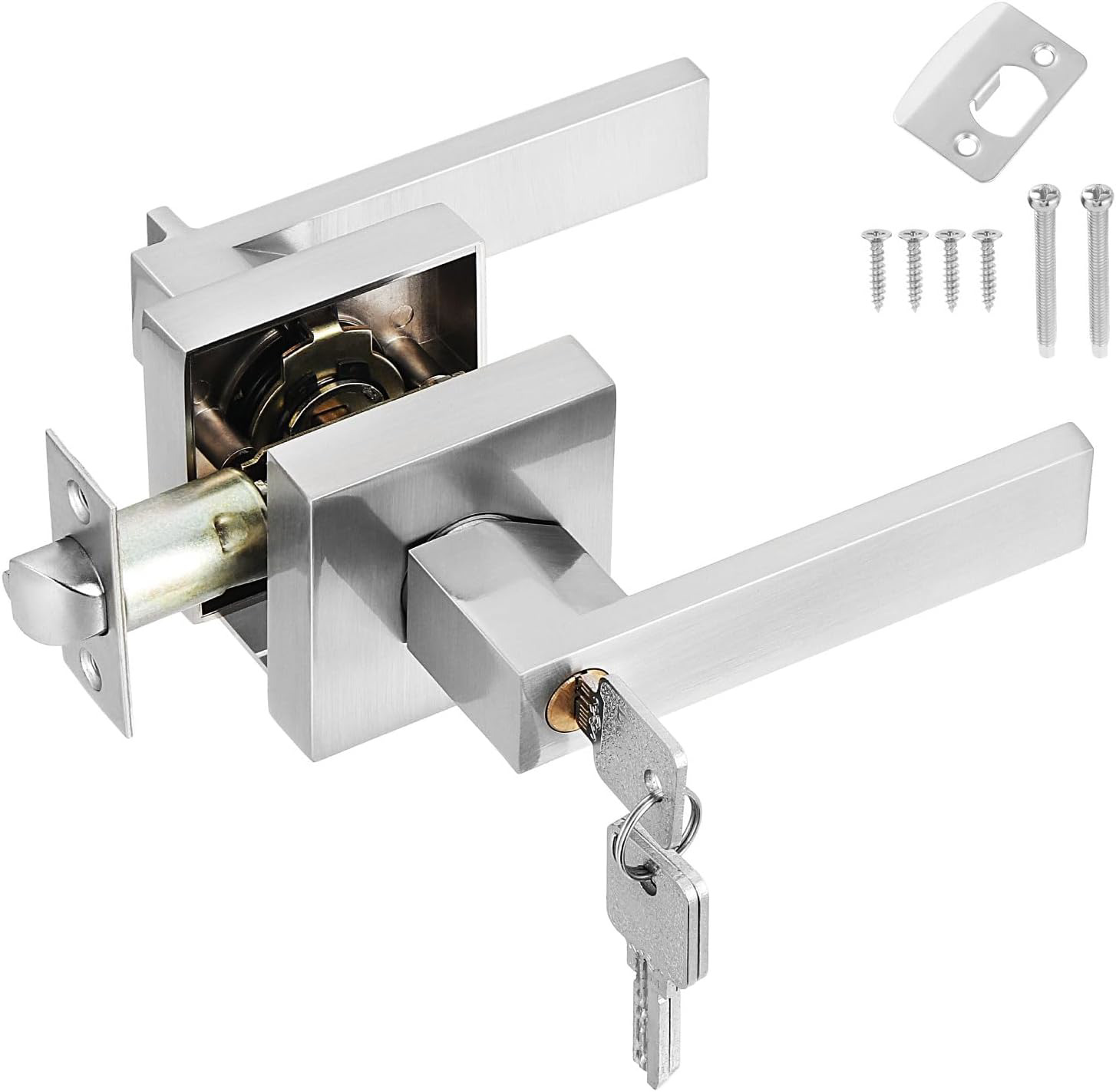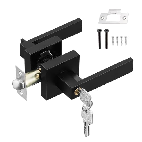 HSEAMALL Door Lever Handle Lock,Interior Door Handle with Lock and Key Square or