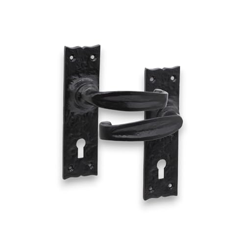 Infinity Decor Pair of Antique Black Isabella Lever Door Handle on Backplate – Wrought Iron Key Lock Door Handle Pack for Internal and External Use