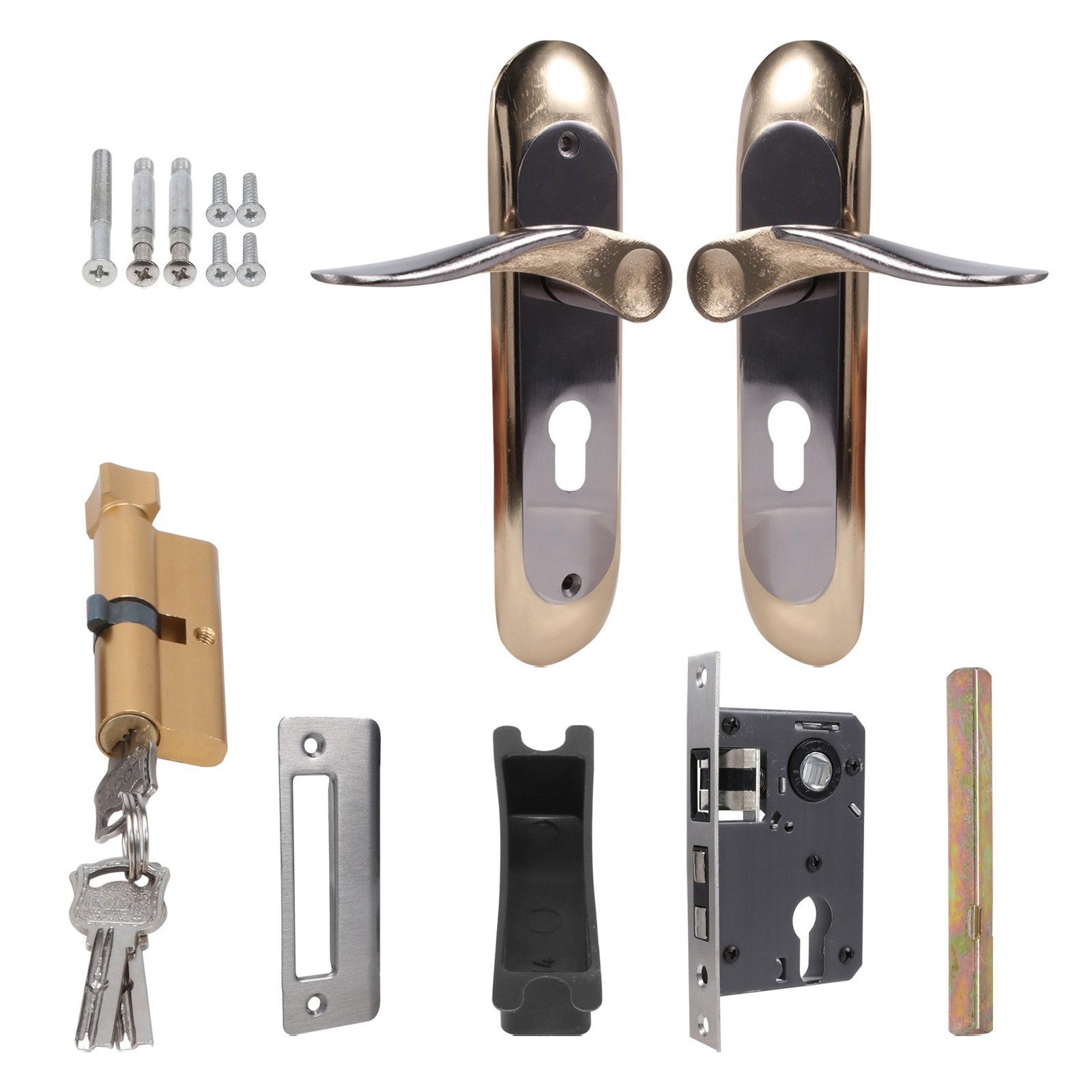 AUNMAS Door Handle Set, Manganese Steel Universal Home Lock Key Set With Lever, Cylinder, Keys, Screw, Back Box, Square Bar, Body, Iron Sheet