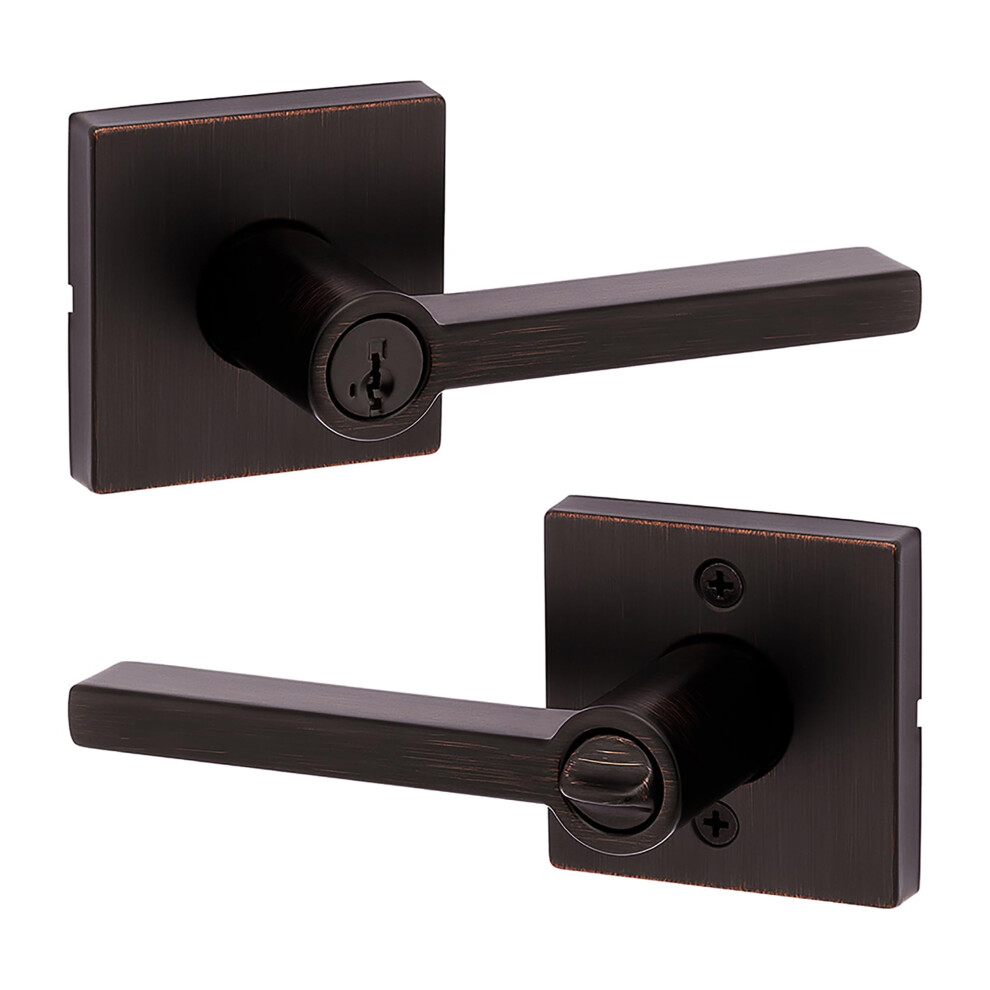 Kwikset Tustin Entry Door Handle with Lock and Key Secure Keyed Reversible Lever Exterior For Front Entrance and Bedrooms Venetian Bronze
