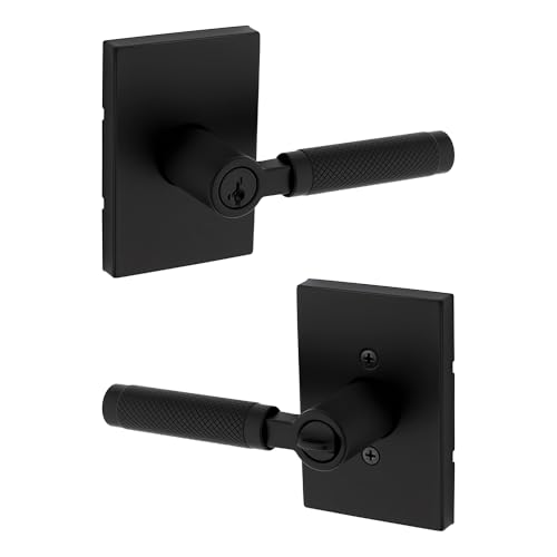 Kwikset Trafford Entry Door Handle with Lock and Key, Secure Keyed Reversible Lever Exterior, for Front Entrance and Bedrooms, Matte Black, Pick Resistant Smartkey Rekey Security and Microban
