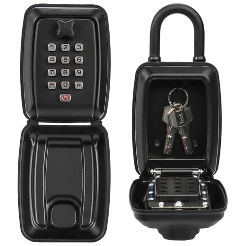 Cididu Key Lock Box for Outside, Waterproof Key Lockbox with 12-Digit Push Button Combination and Removable Shackle, Resettable Code Key Safe Storage Box for Door Handle, House, Retail Store, Garage
