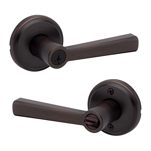 Kwikset Tustin Entry Door Handle with Lock and Key Secure Keyed Reversible Lever Exterior For Front Entrance and Bedrooms Venetian Bronze Pick Res