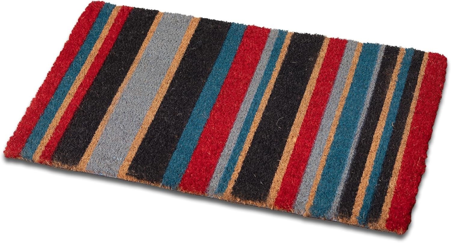 Addis Stripe Door Mat 100% Natural Coir Pile with colour Stripe Design - 70 x 40 cm, Multi