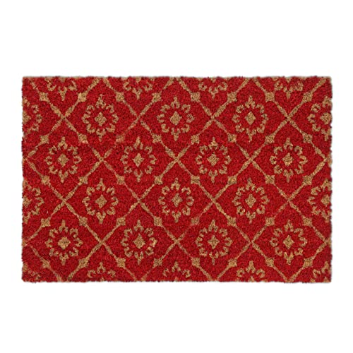 Relaxdays Floral Pattern Door mat Doormat Coir Welcome, 40 x 60 cm, Inside & Outside, Non-Slip Shoe Wiper, Red/Brown