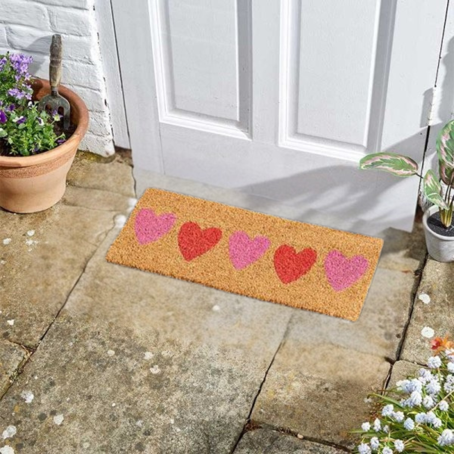JVL Eco-friendly Latex Backed Coir Door Mat, Heart To Heart