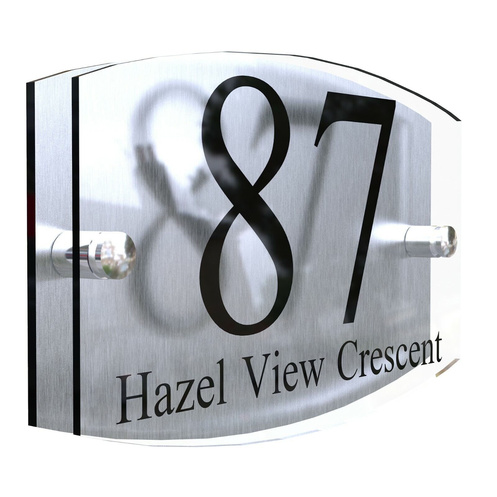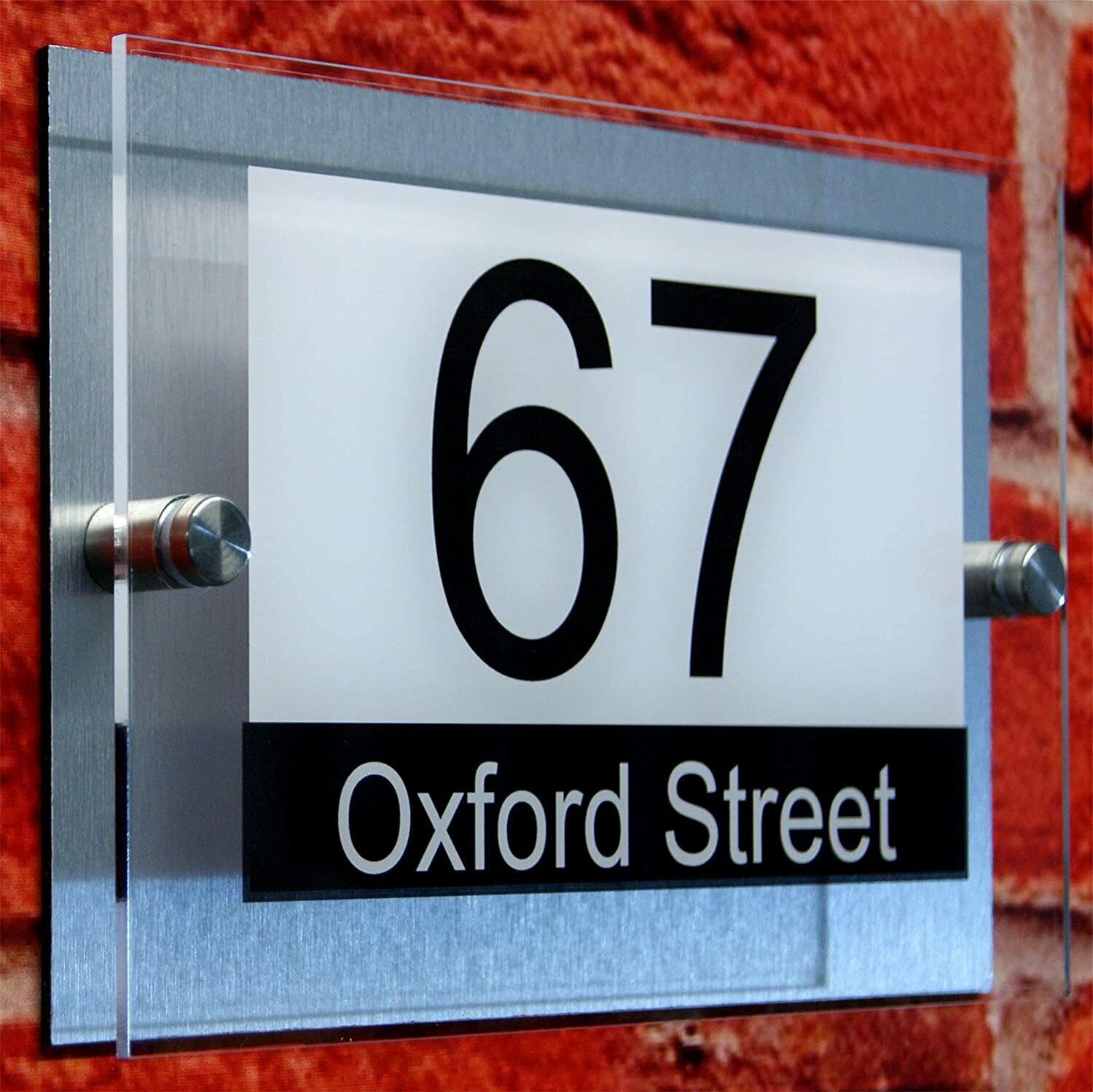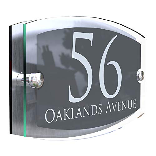 MODERN HOUSE SIGN PLAQUE DOOR NUMBER STREET GLASS EFFECT ACRYLIC ALUMINIUM NAME
