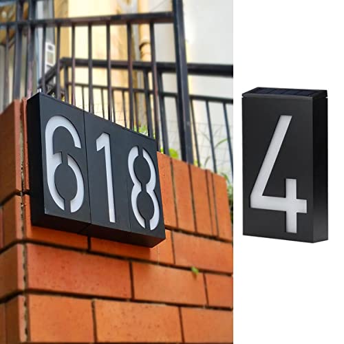 TINYOUTH Solar House Number - Number 4, Door Number Plaques Light for Wall, 6 LED House Numbers Plaque with Lights, IP55 Waterproof House Finder for DIY House Sign