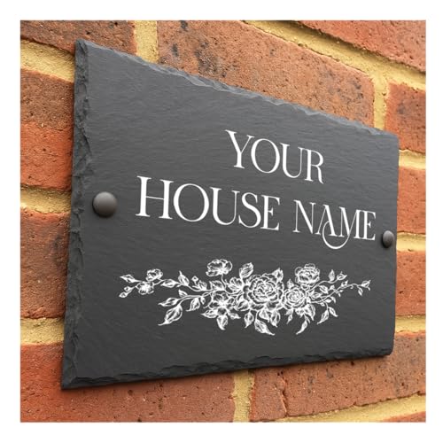 Crafted Memories - Rustic Slate House Sign | Personalized UV-Printed Plaque | Weather-Resistant & Easy to Install | Slate Door Number Sign, House Name Plaque