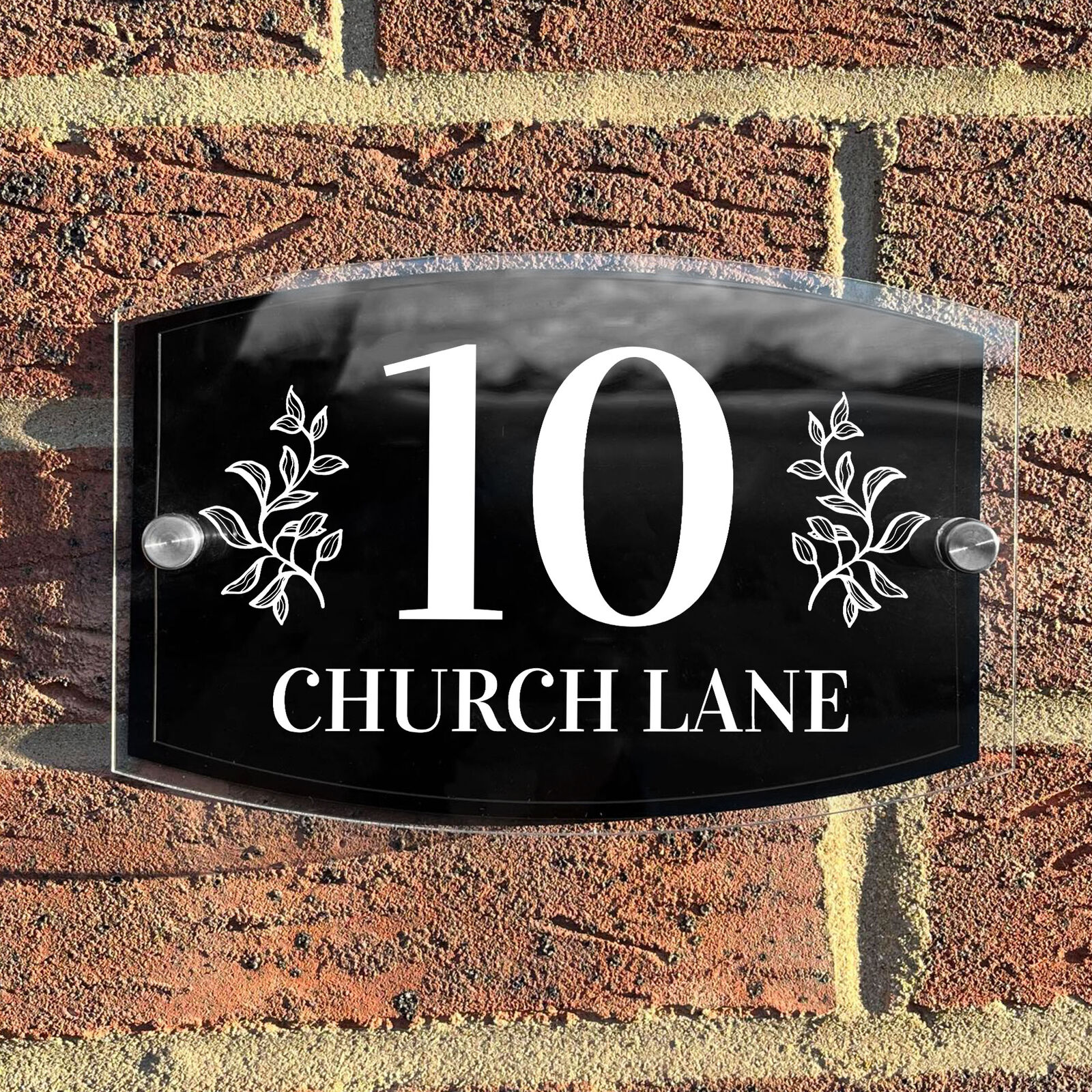 House Sign Modern Glass Effect Acrylic Door Number Name Road Plate Plaque