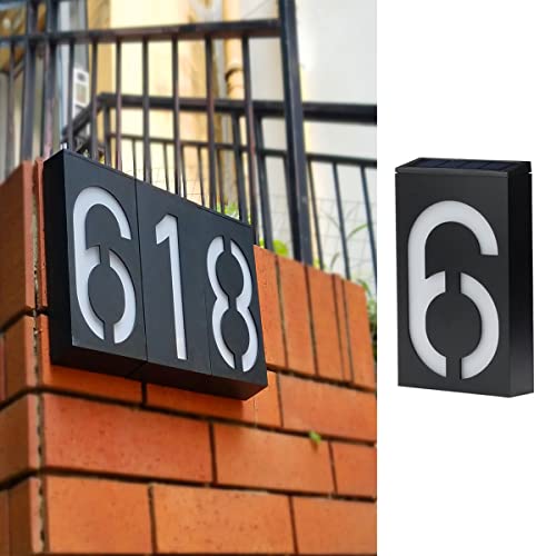 TINYOUTH Solar House Number - Number 6, Door Number Plaques Light for Wall, 6 LED House Numbers Plaque with Lights, IP55 Waterproof House Finder for DIY House Sign