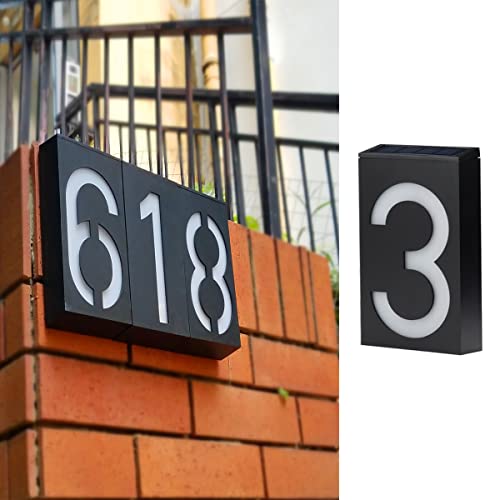 TINYOUTH Solar House Number - Number 3, Door Number Plaques Light for Wall, 6 LED House Numbers Plaque with Lights, IP55 Waterproof House Finder for DIY House Sign