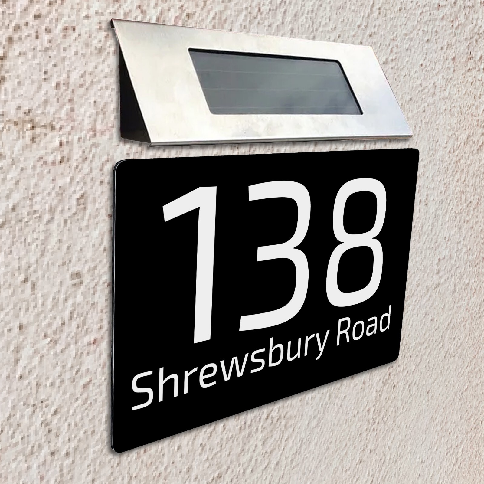 MODERN HOUSE SIGN PLAQUE DOOR NUMBER STREET ENGRAVED SLATE SIGN SOLAR LIGHT