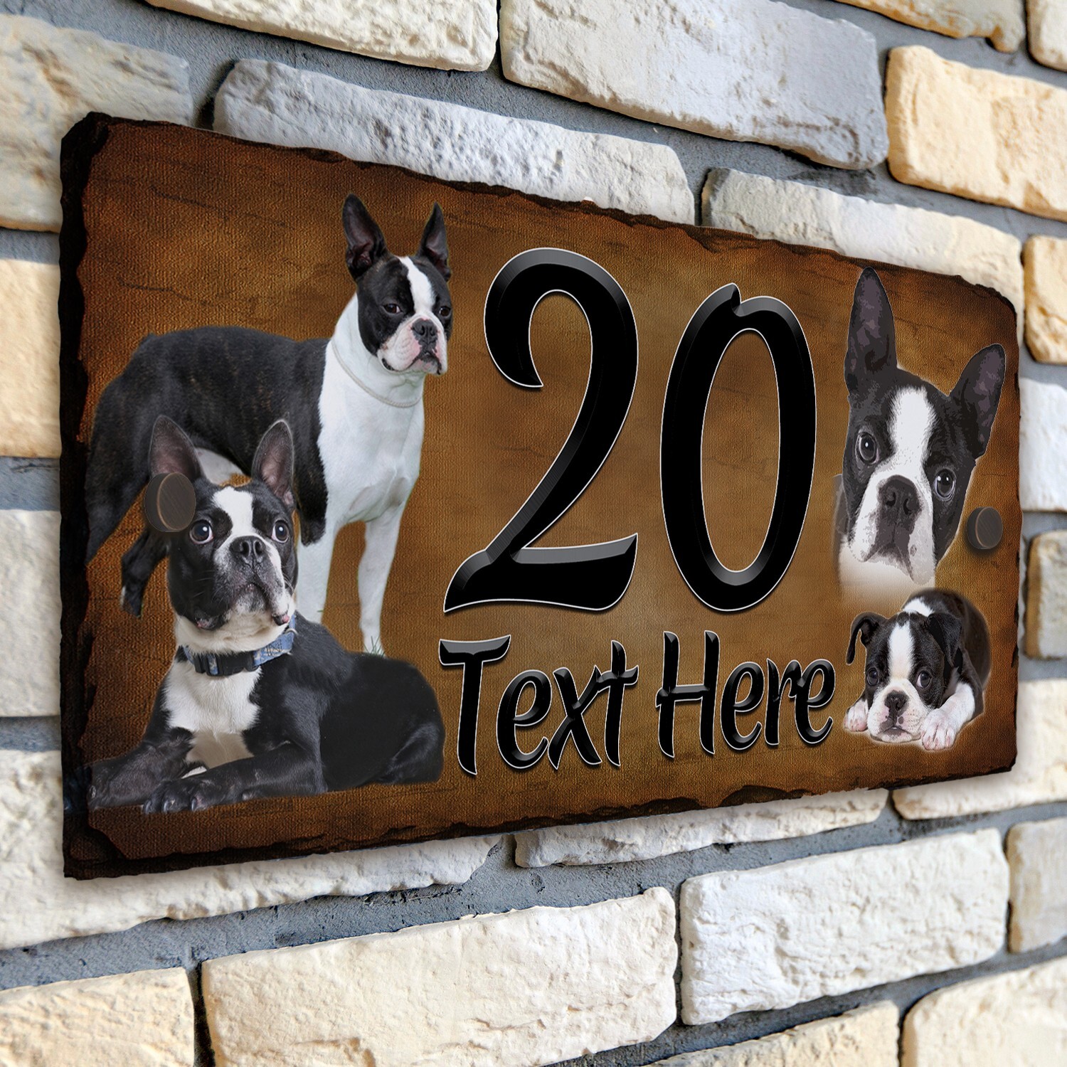 Boston Terrier House Number Slate Sign Dog Door Gate Plaque Personalised DSL12