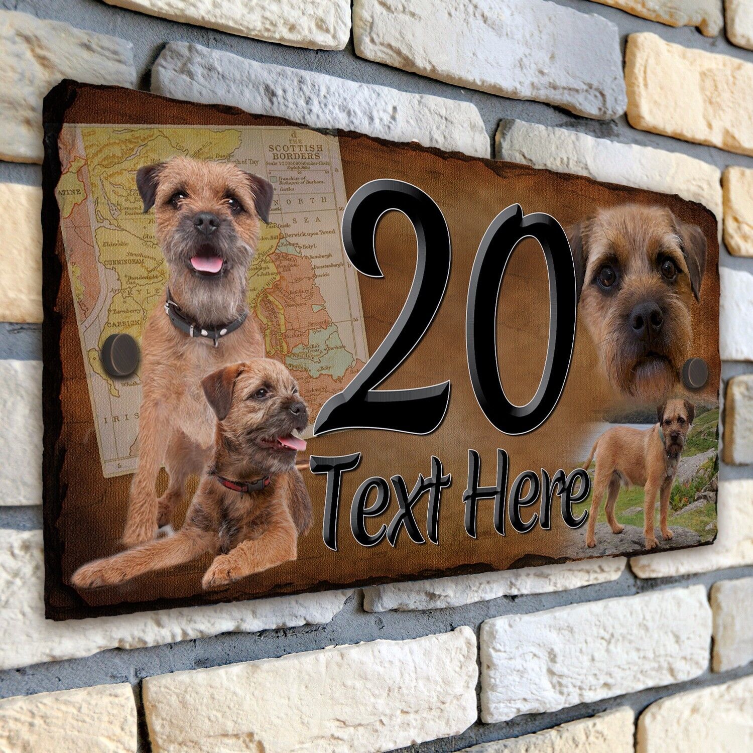 Border Terrier House Number Slate Sign Dog Door Gate Plaque Personalised DSL11