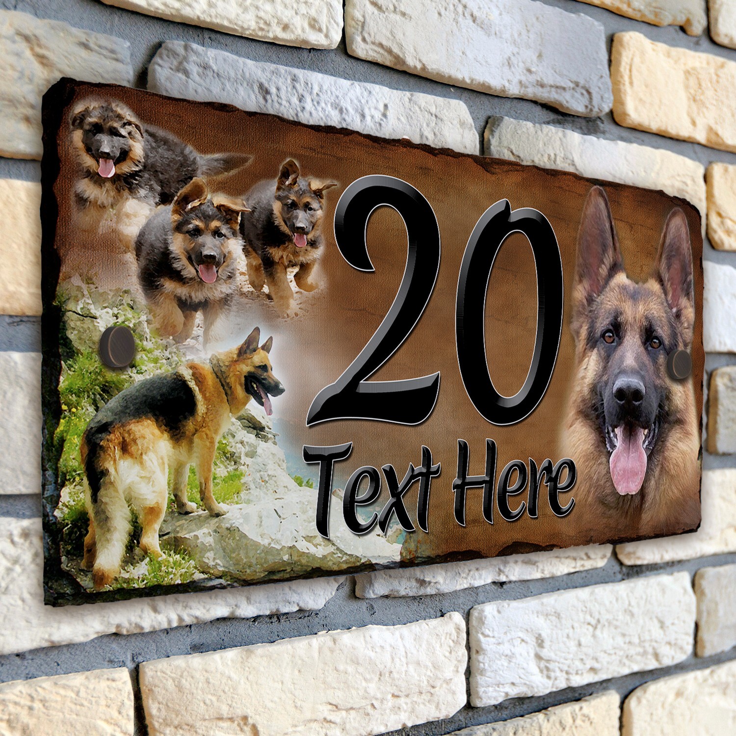 Alsatian House Number Slate Sign Rustic Dog Door Gate Plaque Personalised DSL02