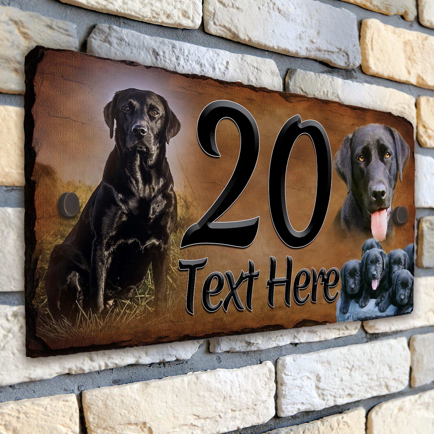 Black Labrador House Number Slate Sign Rustic Dog Door Plaque Personalised DSL08