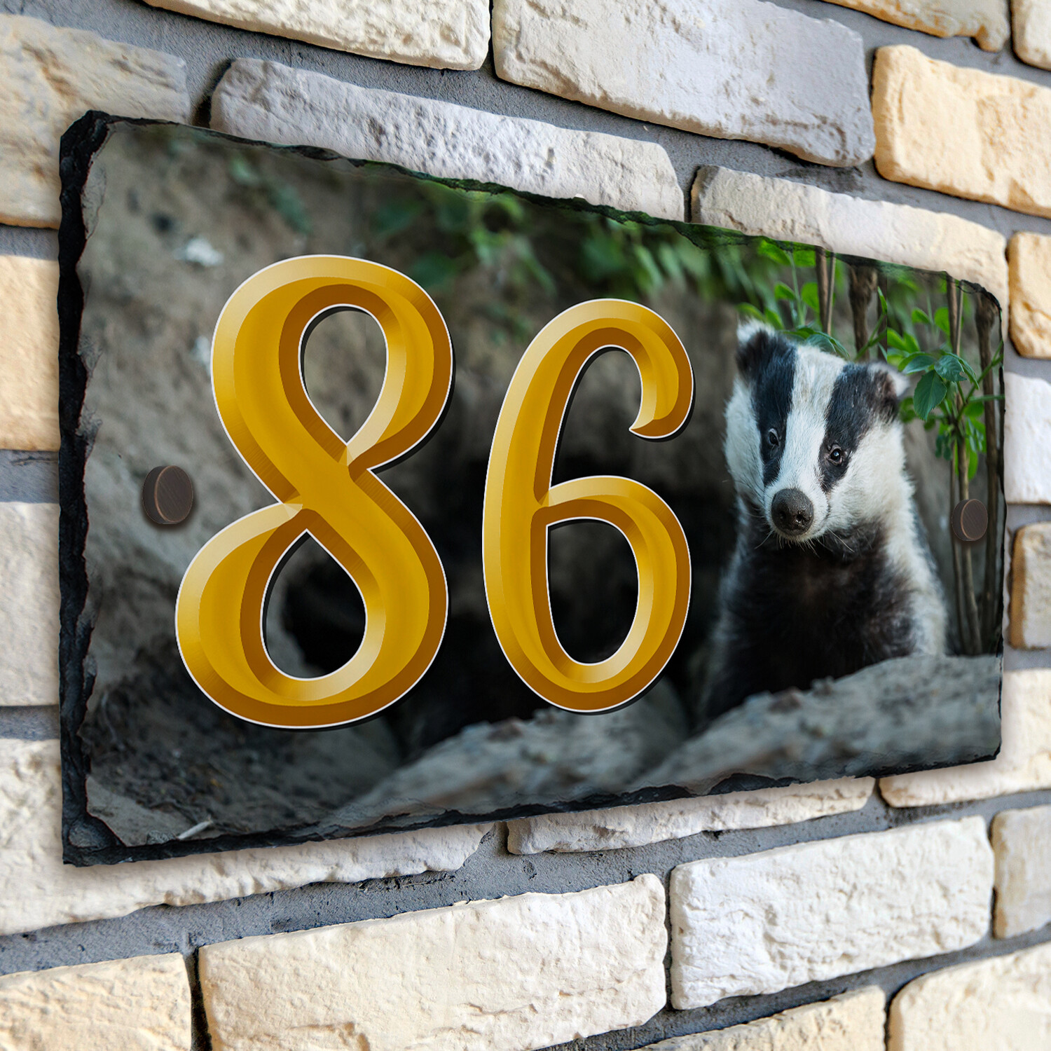 Badger House Number Slate Name Gate Sign Plaque Door Personalised Door SL05