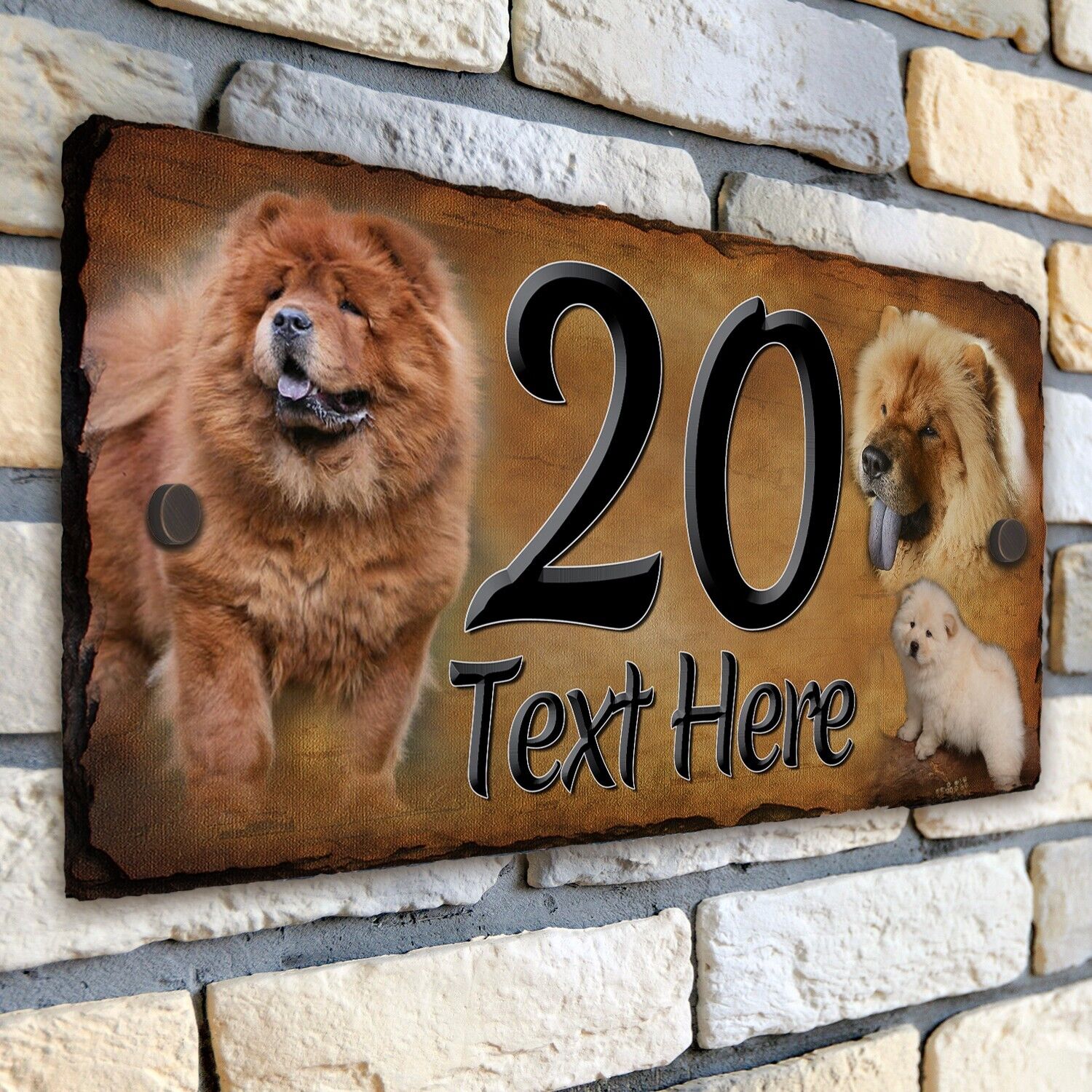 Chow Chow House Number Slate Sign Rustic Dog Door Gate Plaque Personalised DSL22