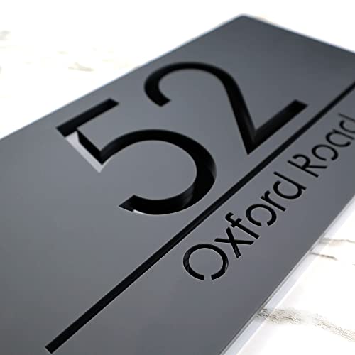 K Smart Sign | Bellisima H3 F31 | Matt Dark Gray Personalised House Sign Laser Cut 3d Door Numbers Street Address Grey Number Signs Plaque | 300mm x 160mm (Matt Dark Gray & Gloss Black)