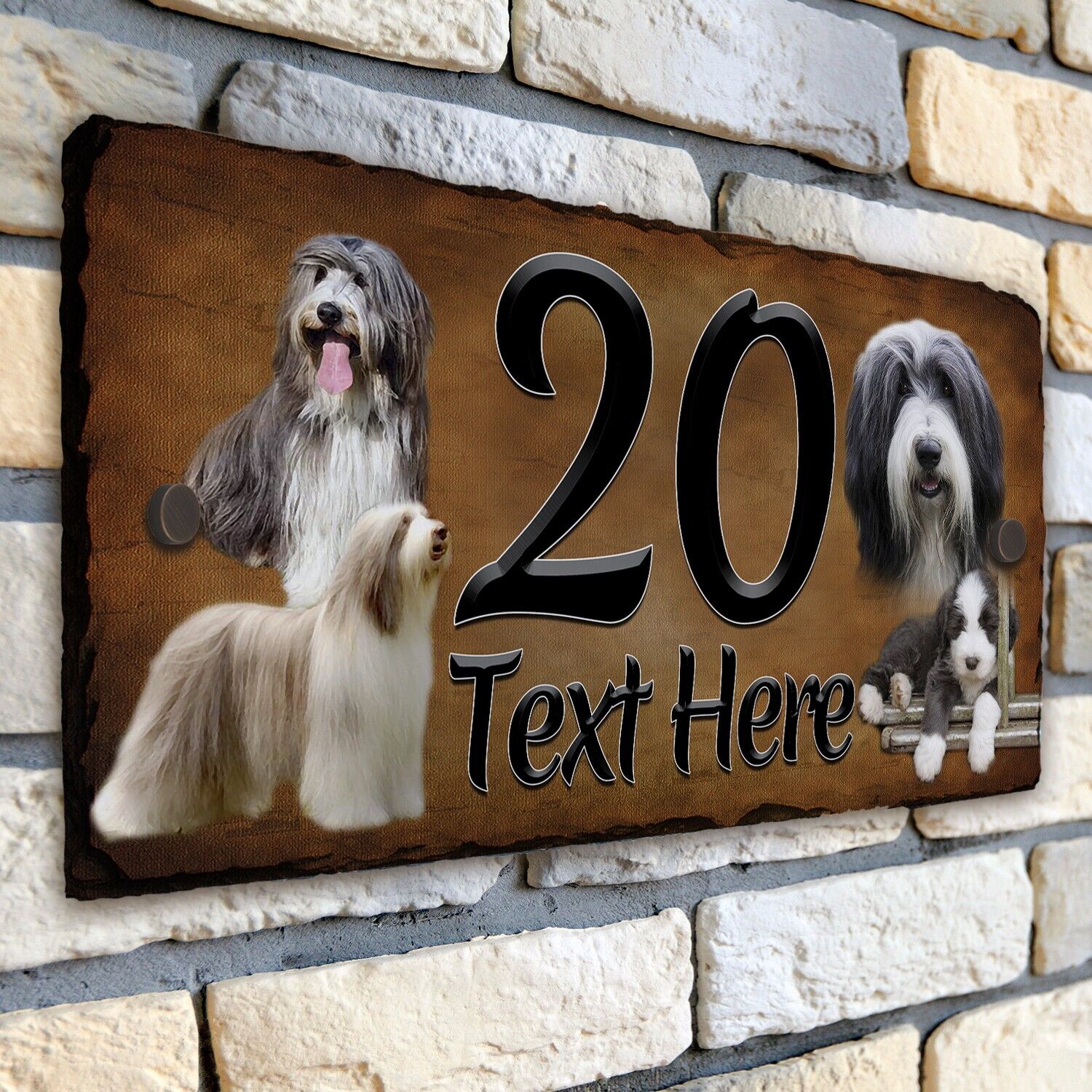 Bearded Collie House Number Slate Sign Dog Door Gate Plaque Personalised DSL04