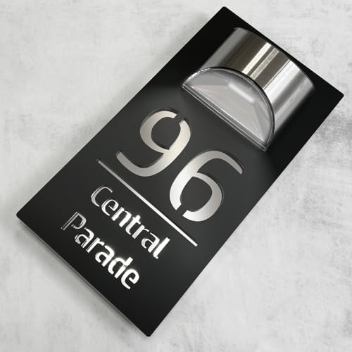House Numbers Plaques With Solar Light House Numbers Door Signs Personalised Door Number For Wall Name Outside (Black and Mirror Silver)