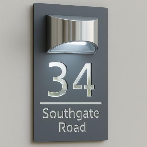 House Numbers Plaques With Solar Light Door Number Plaques For Wall Custom House Number Signs (Grey & Modern Text)