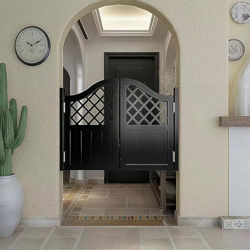 Cafe Swinging Doors, Solid Wood Saloon Door Interior Fence Half Waist Door with Stainless Steel Hinges, for Kitchen Shop Entrance Partition Pub Staircases, Corridors(Black,H90cm x W87cm)
