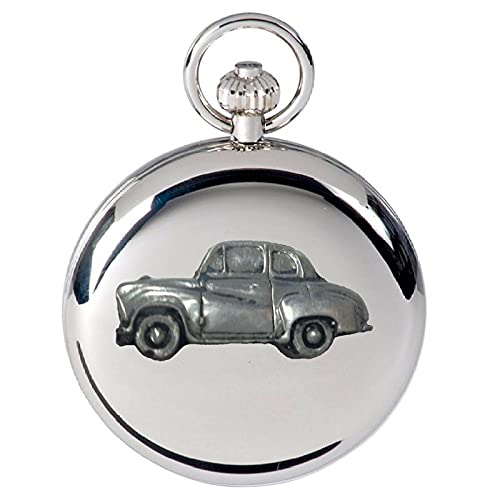 Pewter Morris Minor 4 Door Saloon Late Model ref167 Effect Design on a Polished Silver case Men's Gift Quartz Pocket Watch fob