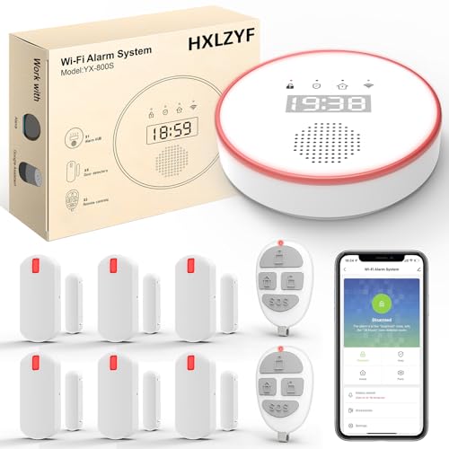 HXLZYF Home Alarm Systems, 5G/2.4G Home Security Systems, Door Alarms for Your Home with Hub Siren, 6 Door/Window Sensors, 2 Remotes, via APP, for Office, Garages, compatible with Alexa, Google