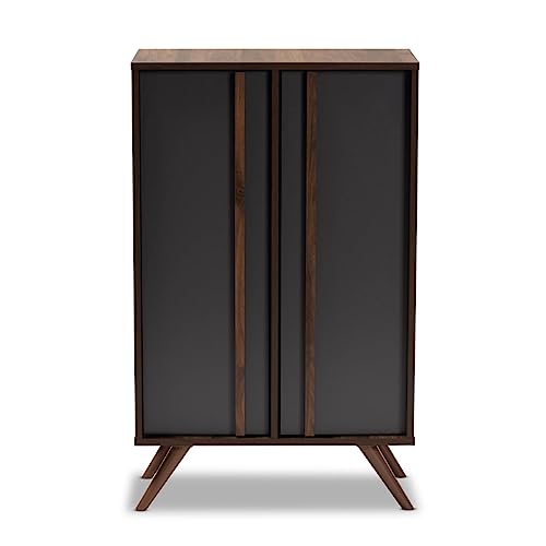 KB Designs - Grey Finish Wood 2-Door Shoe Rack Storage Cabinet,