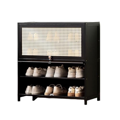 PPOIUYK Bamboo Shoe Storage Cabinet,Rattan Shoe Cabinet with Door Free Standing Shoe Rack Organizer for Entryway Bedroom Cloakroom Hallway,Black,80 * 32 * 40cm