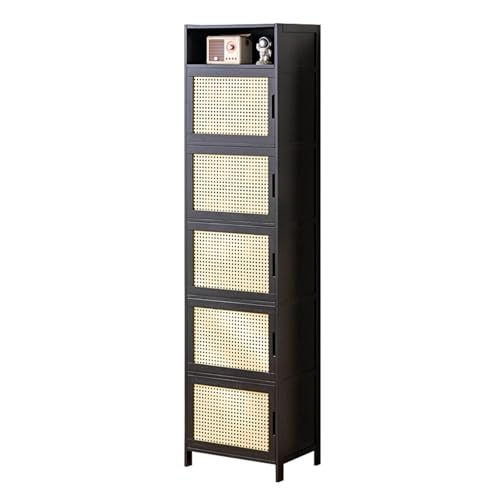 PPOIUYK Bamboo Shoe Storage Cabinet,Rattan Shoe Cabinet with Door Free Standing Shoe Rack Organizer for Entryway Bedroom Cloakroom Hallway,Black,60 * 32 * 106cm