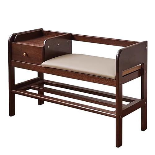 LMXRYPD Front Door Shoe Rack, Solid Wood Shoe Bench with Cushion, 2 Tier Shoe Cabinet, with Armrests, for Entryway, Hallway, Living Room(Brown)