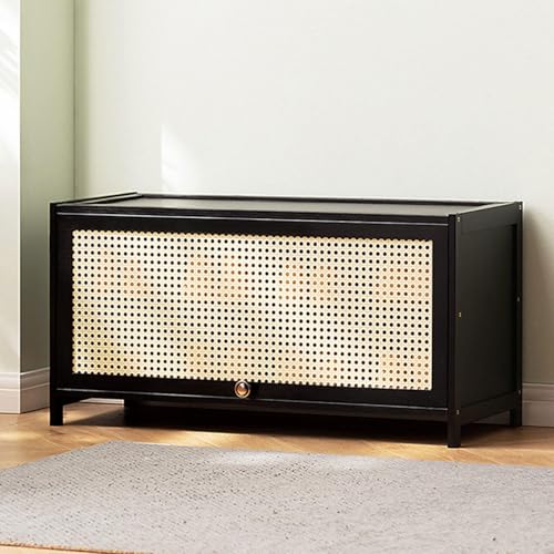 PPOIUYK Bamboo Shoe Storage Cabinet,Rattan Shoe Cabinet with Door Free Standing Shoe Rack Organizer for Entryway Bedroom Cloakroom Hallway,Black,70 * 32 * 40cm