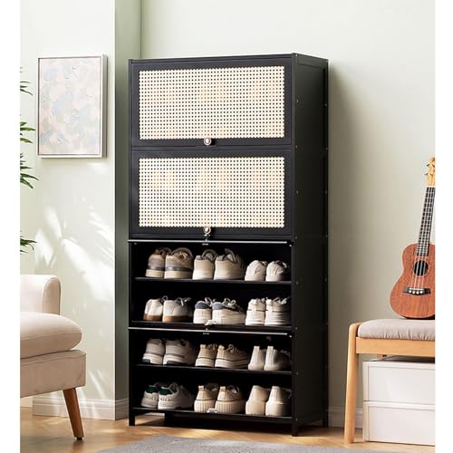 PPOIUYK Bamboo Shoe Storage Cabinet,Rattan Shoe Cabinet with Door Free Standing Shoe Rack Organizer for Entryway Bedroom Cloakroom Hallway,Black,70 * 32 * 73cm