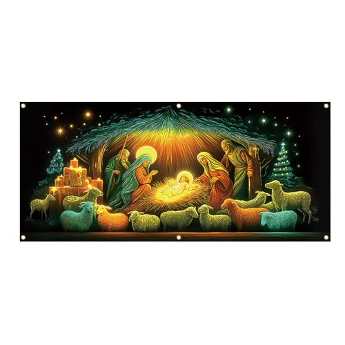 Door Cover for Christmas - Large Fluorescent Backdrops with Religious Jesus Scene | Backdrop Hanger, Banner, Porch Signs for Indoor and Outdoor, Home Party, Farm, By