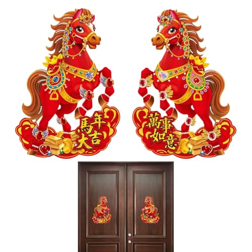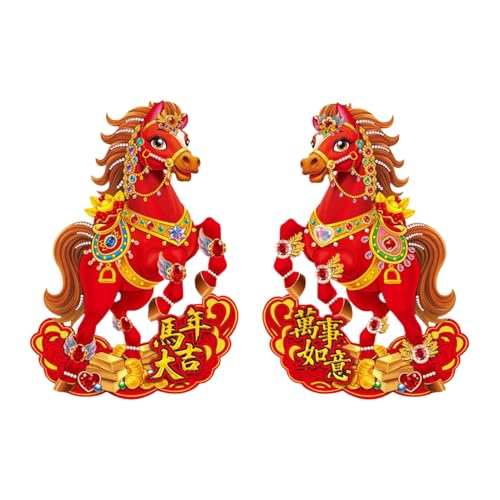 Red Wall Horse Signs – 2 Pieces Chinese New Year Door Banners Paper Animal Ornaments for Entrance, Home, Patio, Office, Shop, and Bedroom Decoration, Spring Festival Holiday Decor, Easy to