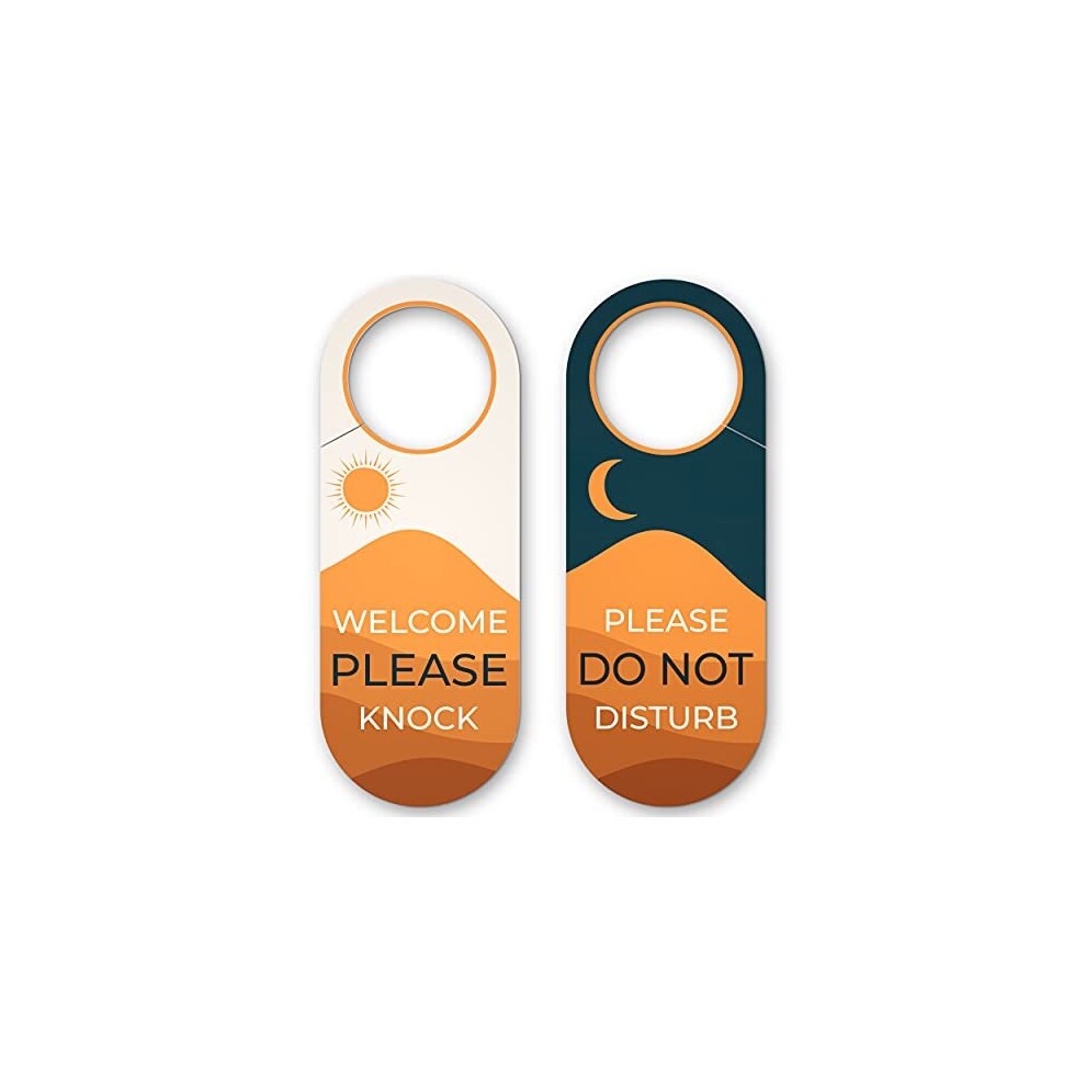 Please Do Not Disturb Door Hanger Sign / Welcome Please Knock - 2 Pack - Universal Fit - 9 x 3.5" - Perfect Hanging Signs for Bedroom, Hotel, or Home