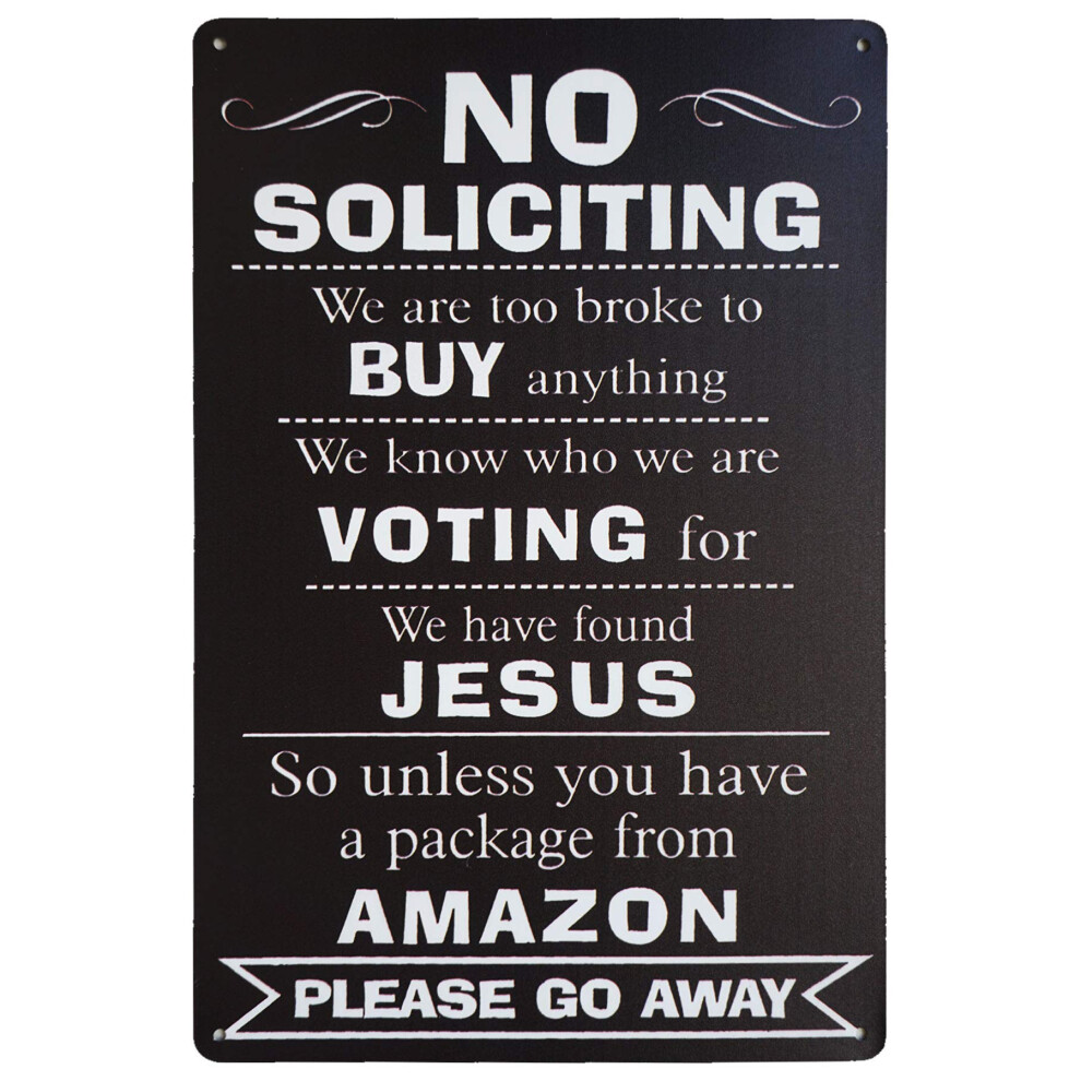 LASMINE Funny No Soliciting Sign No Trespassing Sign Please Go Away Metal Door Signs for Home Business Black 8X12 Inch