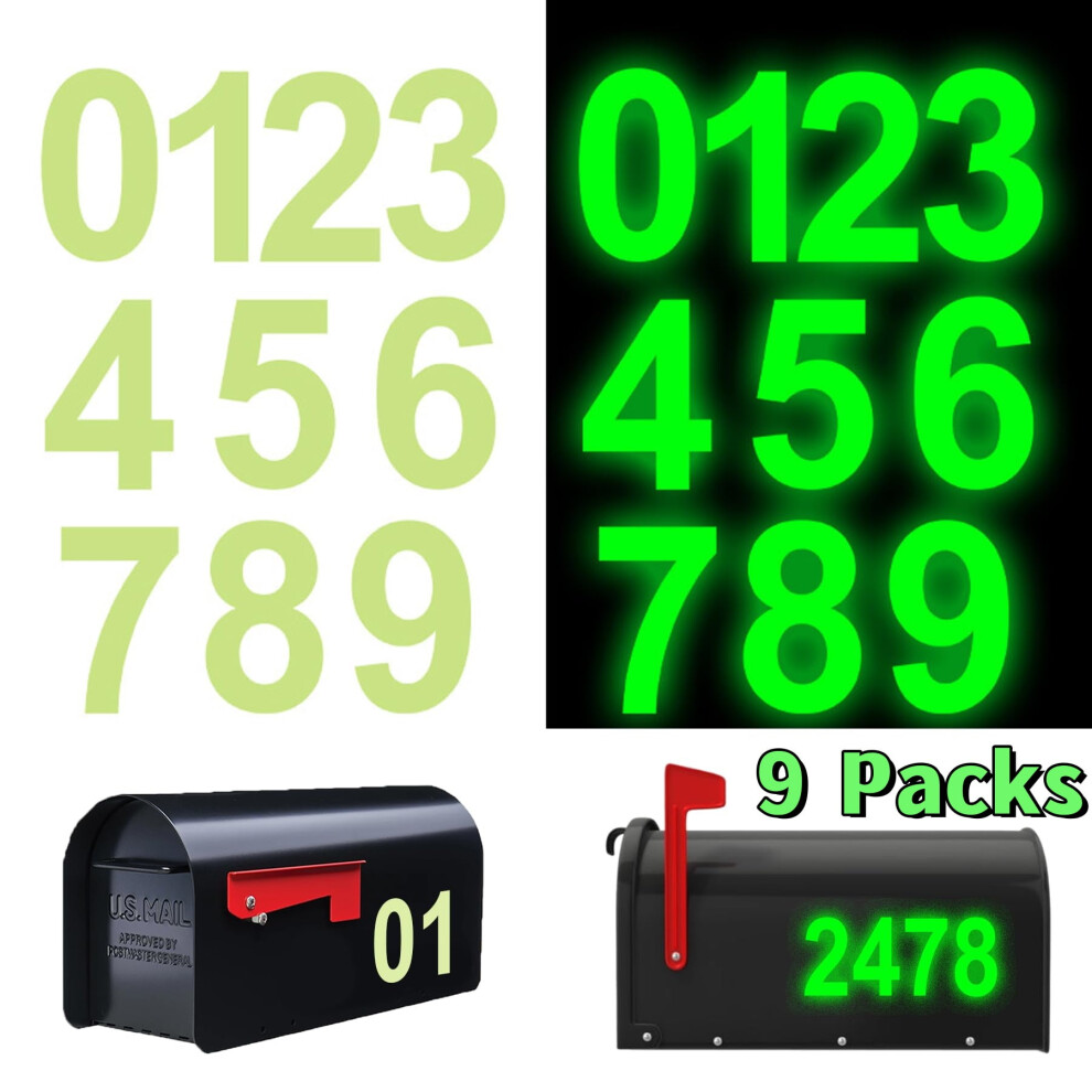 Glow in The Dark Mailbox Alphanumeric Stickers, 1.5/2/3CM, Removable Fluorescent Wall Decals for Signs, Door, Cars, Home, Business
