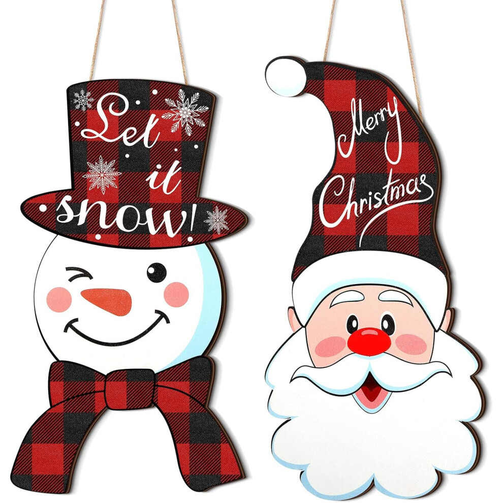 2 Pieces Christmas Door Hanger Decorations - Santa Claus, Snowman & Christmas Tree Designs | Festive Door Signs for Home Indoor & Outdoor Holiday Deco