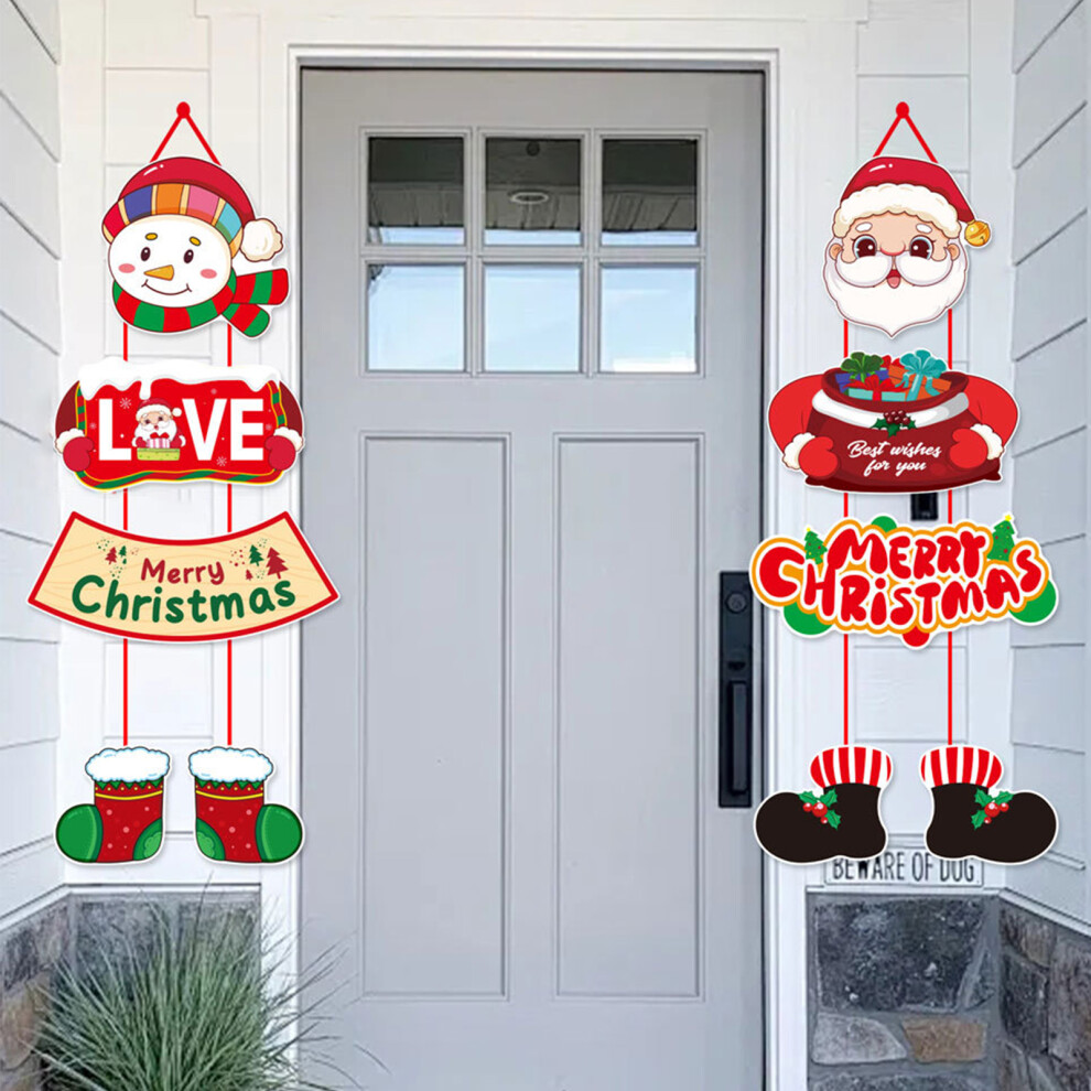 (01) Christmas Home Front Porch Door Hanger Red Green Party Paper Signs Banners for Front Door Yard Porch Wall