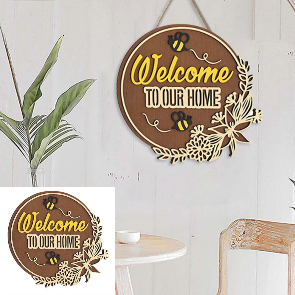 (As show, One size) Welcome Door Hanger Door Decoration Door Wreath Front Door Wreath Decor Front Door Wreath Pendant Signs Home Decor